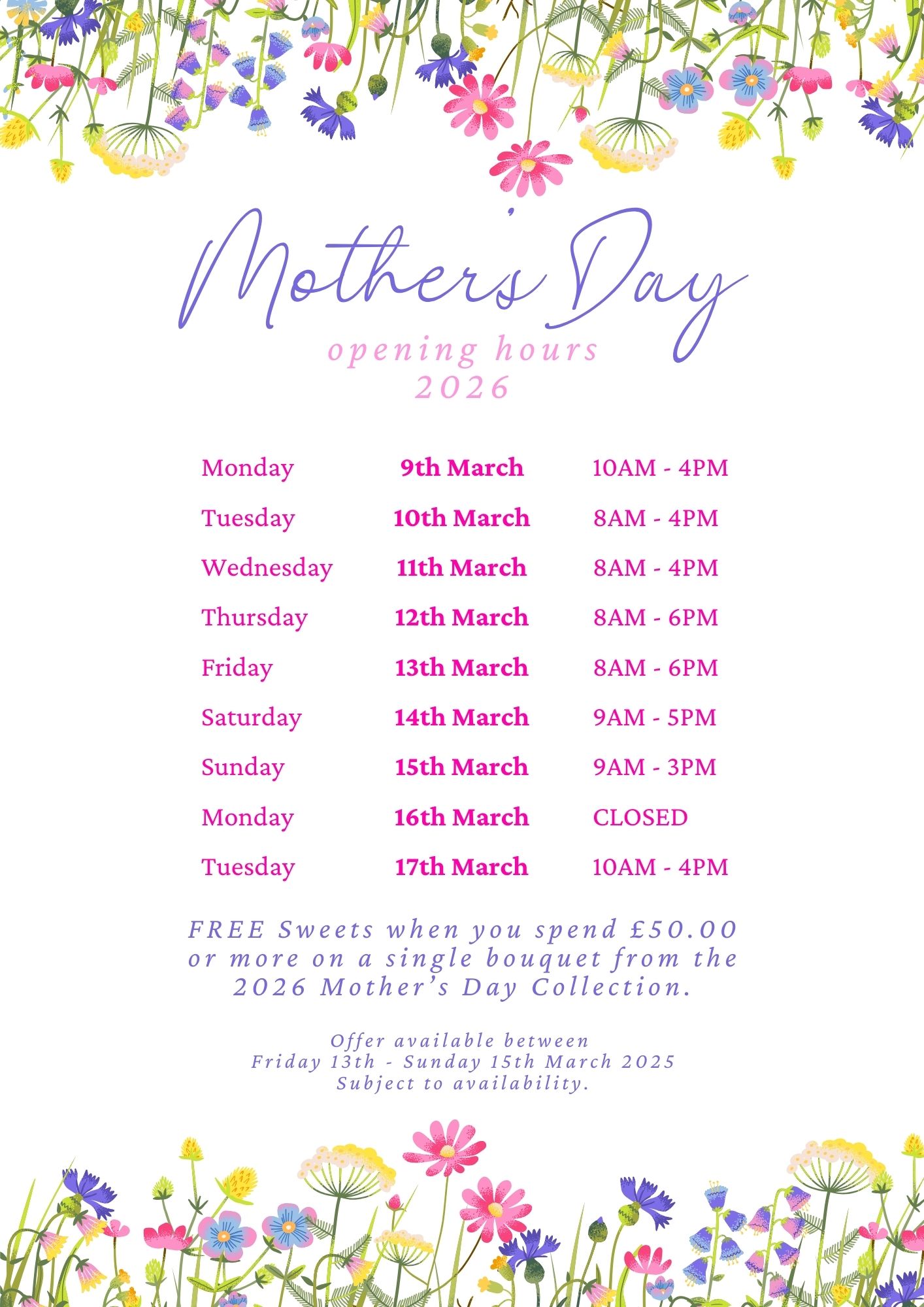 Monday - Closed (except for weddings & funeral deliveries subject to availability)