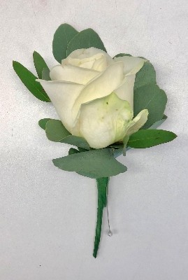 White avalanche rose button hole is the perfect finishing touch to add to your outfit for a special occasion, wedding, christening or funeral.