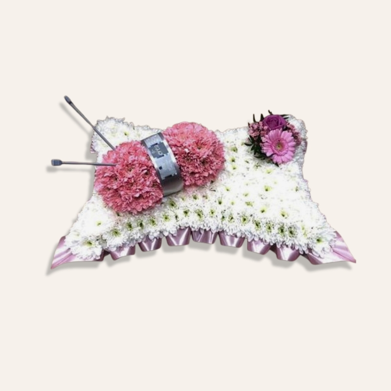 Our knitting funeral tribute is a thoughtful and creative way to honour someone who loved the craft. Designed to reflect their passion for knitting, this unique floral arrangement makes a heartfelt choice for remembering a cherished life.
